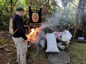 Agentes de la Senad identificaron un campamento narco en Amambay, donde incautaron y destruyeron más de 6,5 toneladas de marihuana.