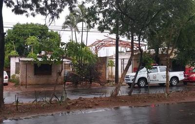 Las ráfagas de viento registradas durante la tormenta de esta mañana, hicieron que la antena, ya en desuso, de una radio cayera sobre una vivienda en Ñemby.