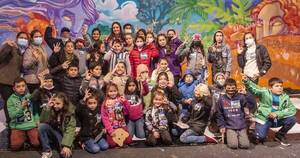 150 niños pilarenses de entre 7 y 12 años aportaron color y creatividad en un mural artístico en la ciudad de Pilar como parte del programa Exploradores.