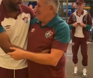 El expelotero Julio César Romerito, idolo del Fluminense, estuvo presente en el Maracaná apoyando al club rapai, y apenas terminó el encuentro deportivo, el compatriota se sacó la remera en símbolo de su felicidad.
