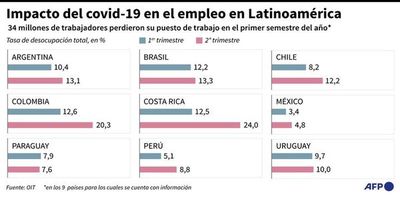 Unos 34 millones de personas perdieron su trabajo por las medidas de confinamiento impuestas para combatir el covid-19 en Latinoamérica, la región del mundo donde más empleo se ha destruido durante la pandemia, según estimó la OIT.