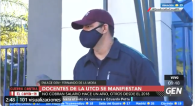 En protesta por la falta de pago de salarios en el colegio privado Eco Escuela, propiedad del complejo educativo de la UTCD, los docentes recurren a una medida de brazos caídos y no acuden a las clases presenciales.